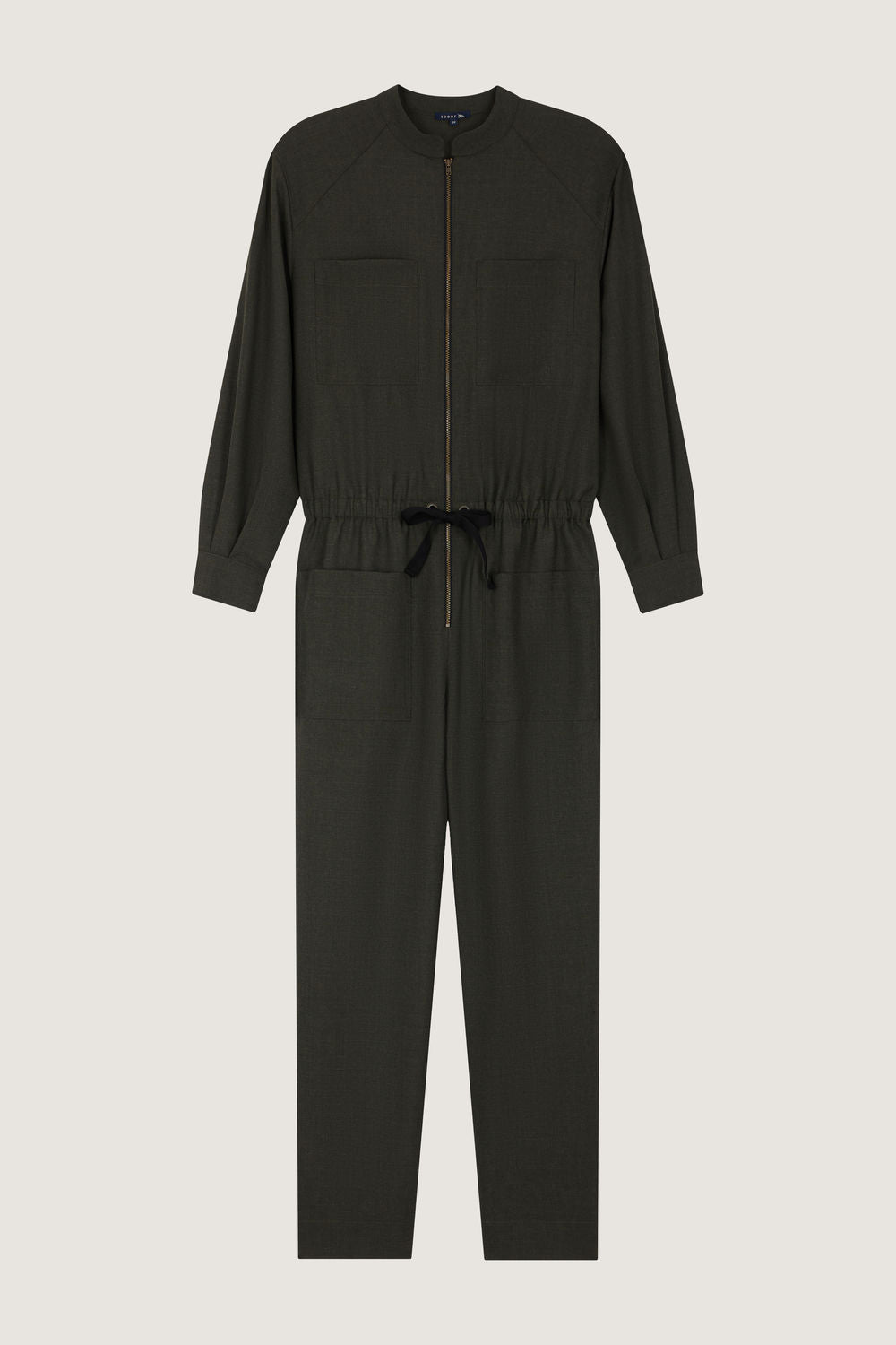Soft woollen fabric jumpsuit khaki
