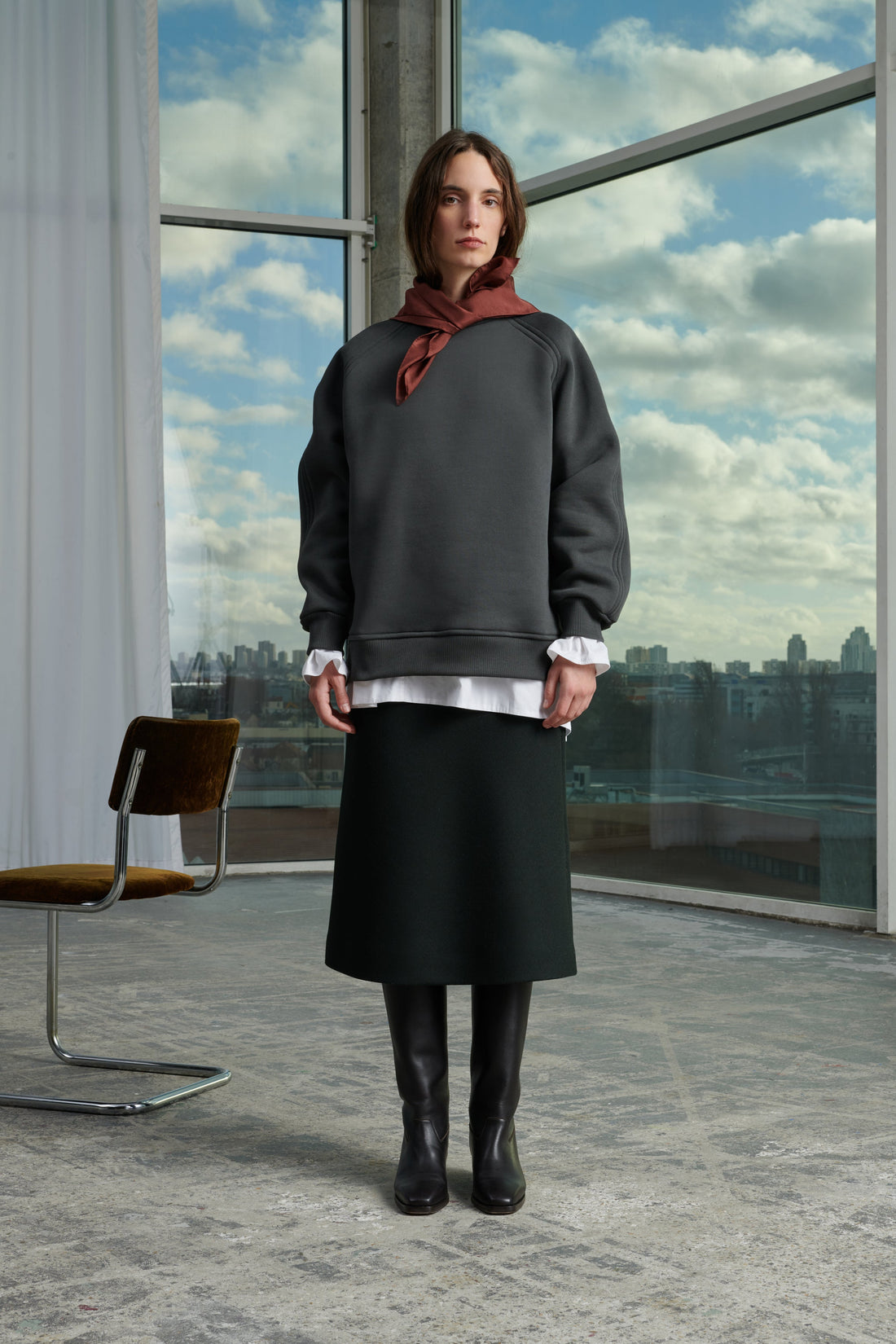 La mannequin is 1m80 (5'11) tall and wears a size 36.