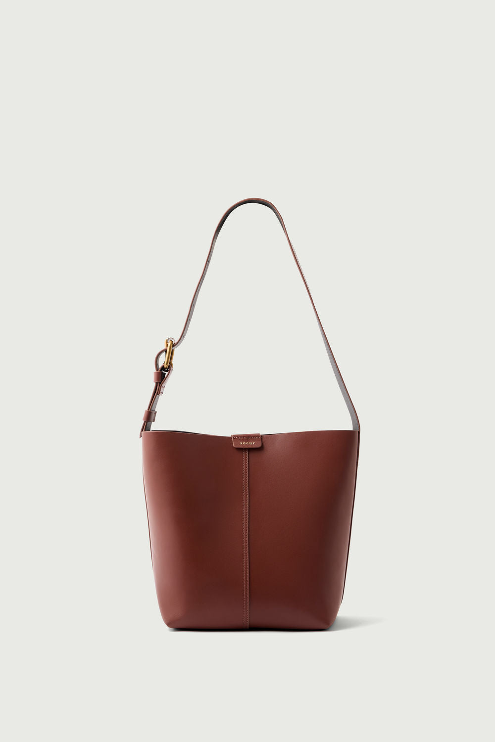 saudade mini bag Two-tone bucket bag in supple mahogany/black leather