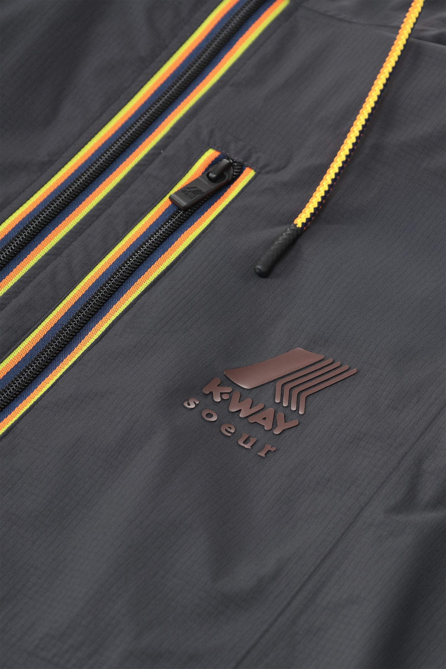 At the heart of this third collaboration, the 100% recycled 2.1 Amiable nylon, certified GRS (Global Recycled Standard), developed in the K-Way® workshops, extends technical expertise with a conscience. Its durability is reinforced by its Ripstop structure, which requires 40% less energy to manufacture than standard textiles. A lightweight, high-performance fabric designed for everyday use, it moves with the body without ever hindering it.
